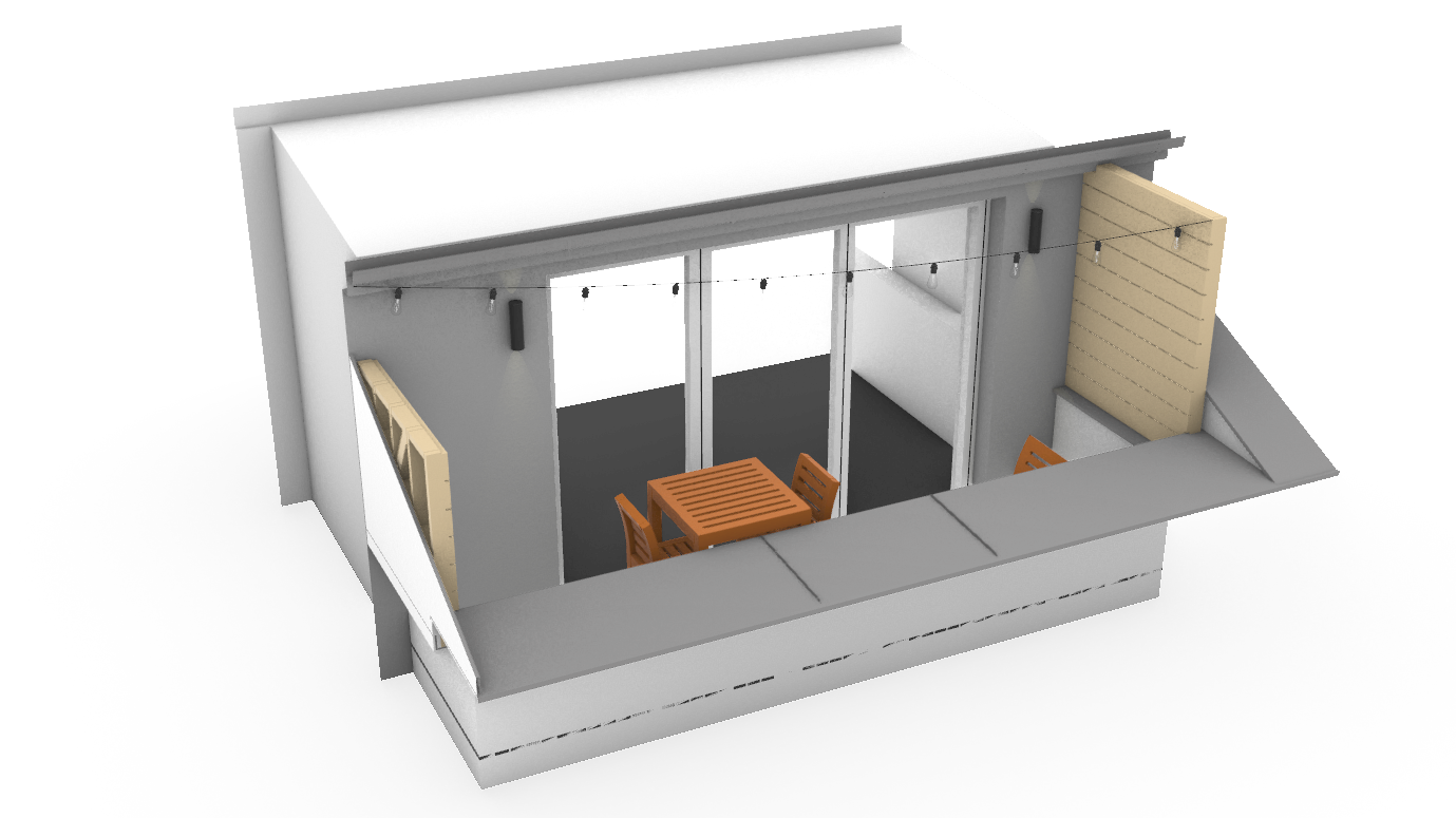 Rear additional solar panels and Starlink aluminum structure that we will make the following summer. I used the official Starlink 3D model.